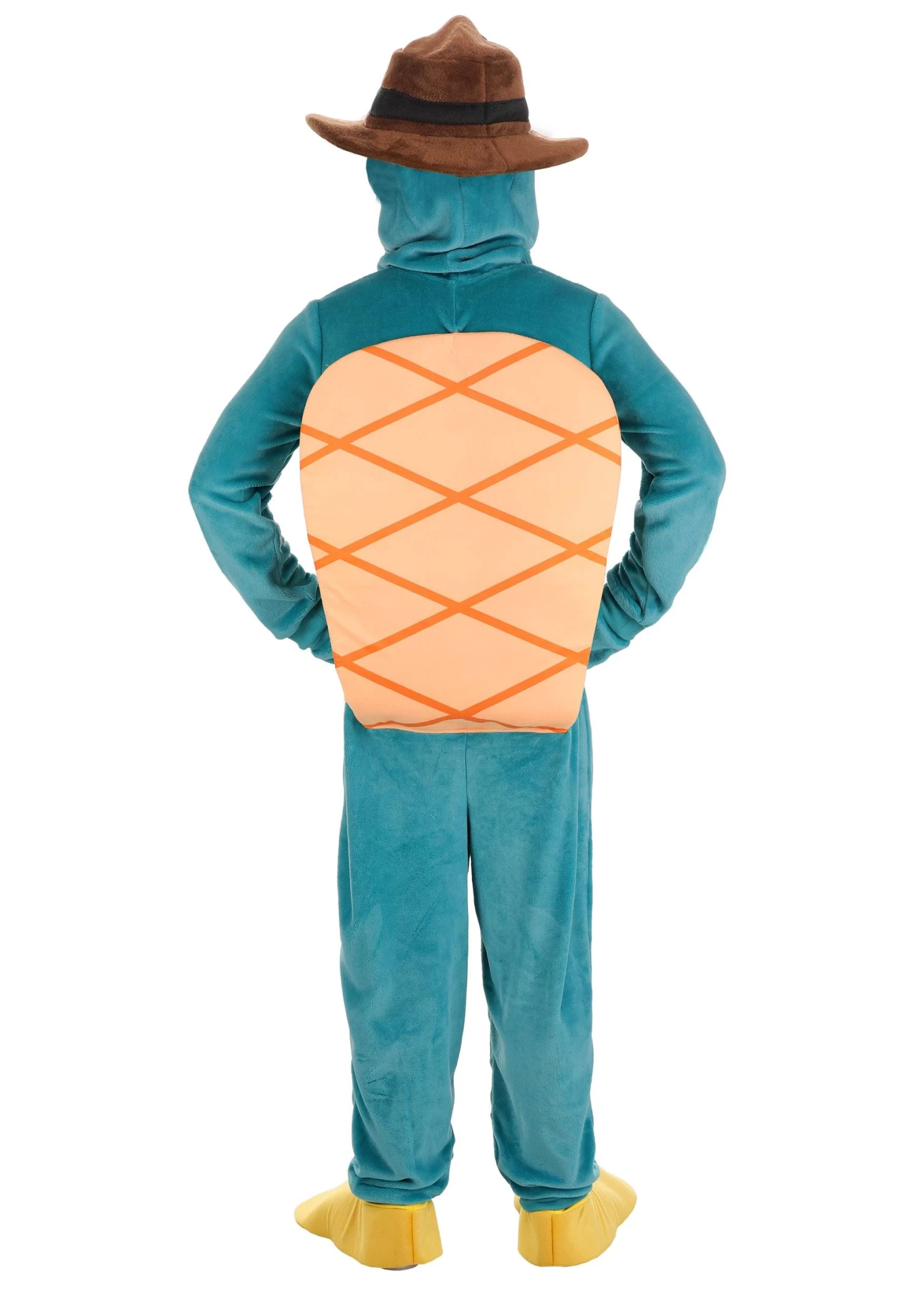 You’ll look just like this semi-aquatic mammal of action from Disney’s Phineas and Ferb when you put on our Adult Perry the Platypus Costume. This comfy jumpsuit is made of plush fabric that imitates the color of Perry’s fur, and it zips down the front for easy changing. His beaver-like tail is attached to the back, and hand and foot covers add the final details. Of course, Perry isn’t Agent P without his hat, which appears on the hood along with his eyes and bill!
