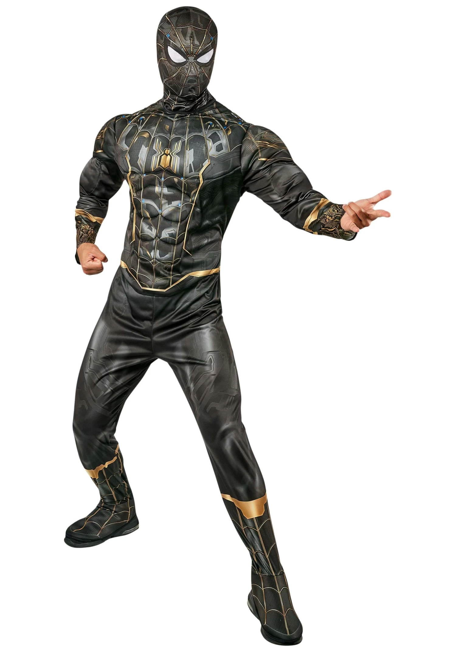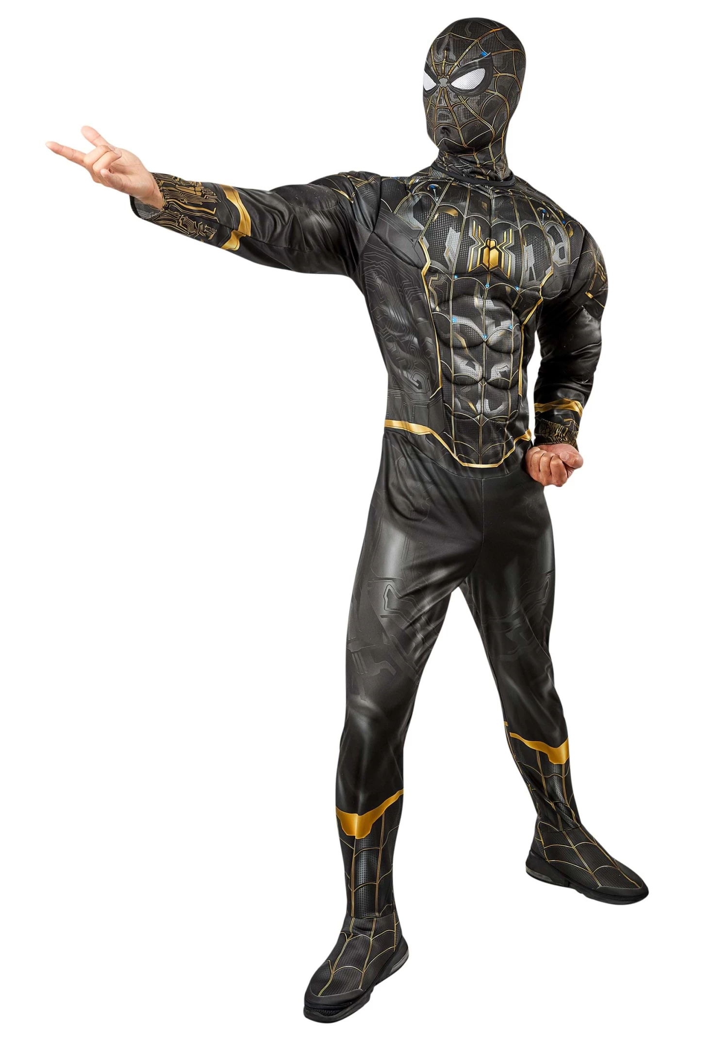 Update your collection of super suits with this Marvel Deluxe Inside Out Spider-Man Adult Costume! Based on one of Spidey’s suits turned inside out (as seen in Spider-Man: No Way Home), this officially licensed look ensures you have the freshest item in the superhero’s arsenal. Including just two pieces, the easy-to-wear ensemble has everything you need to transform into your favorite high-tech hero. The long-sleeved jumpsuit secures easily in the back with hook-and-loop closures. Padding in the shoulders and chest give the costume the look of a muscular build. Meanwhile, the black material is printed with what you’d expect to find inside one of Spidey’s advanced suits, including intricate “circuits,” “lights,” and golden “plates” that create an intriguing and sleek appearance. Attached shoe covers ensure your preferred footwear fits the overall ensemble. And the mask slips over your head to provide the costume a pair of mesh spider lenses.
