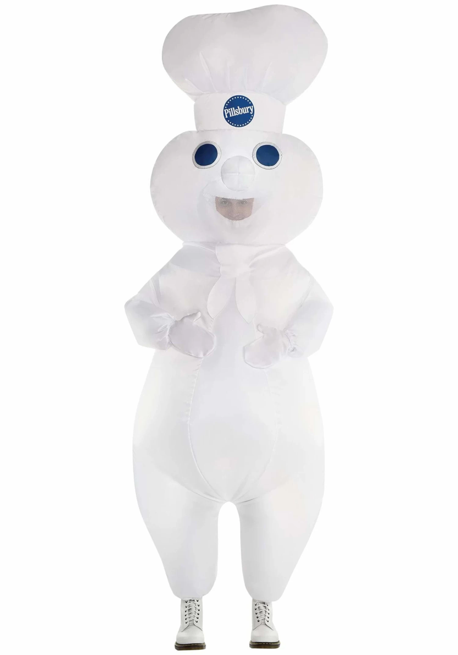 Dress as the most scrumptious mascot in the world in this officially licensed Adult Pillsbury Doughboy Inflatable Costume! The 100 percent polyester jumpsuit has a built-in battery-powered fan that inflates the suit to mimic the Doughboy’s iconic rolls. The face’s happy expression has a clear viewing port in the smile. A chef’s hat with a Pillsbury graphic completes the famous look! Better practice giggling because you’re going to poked a lot.