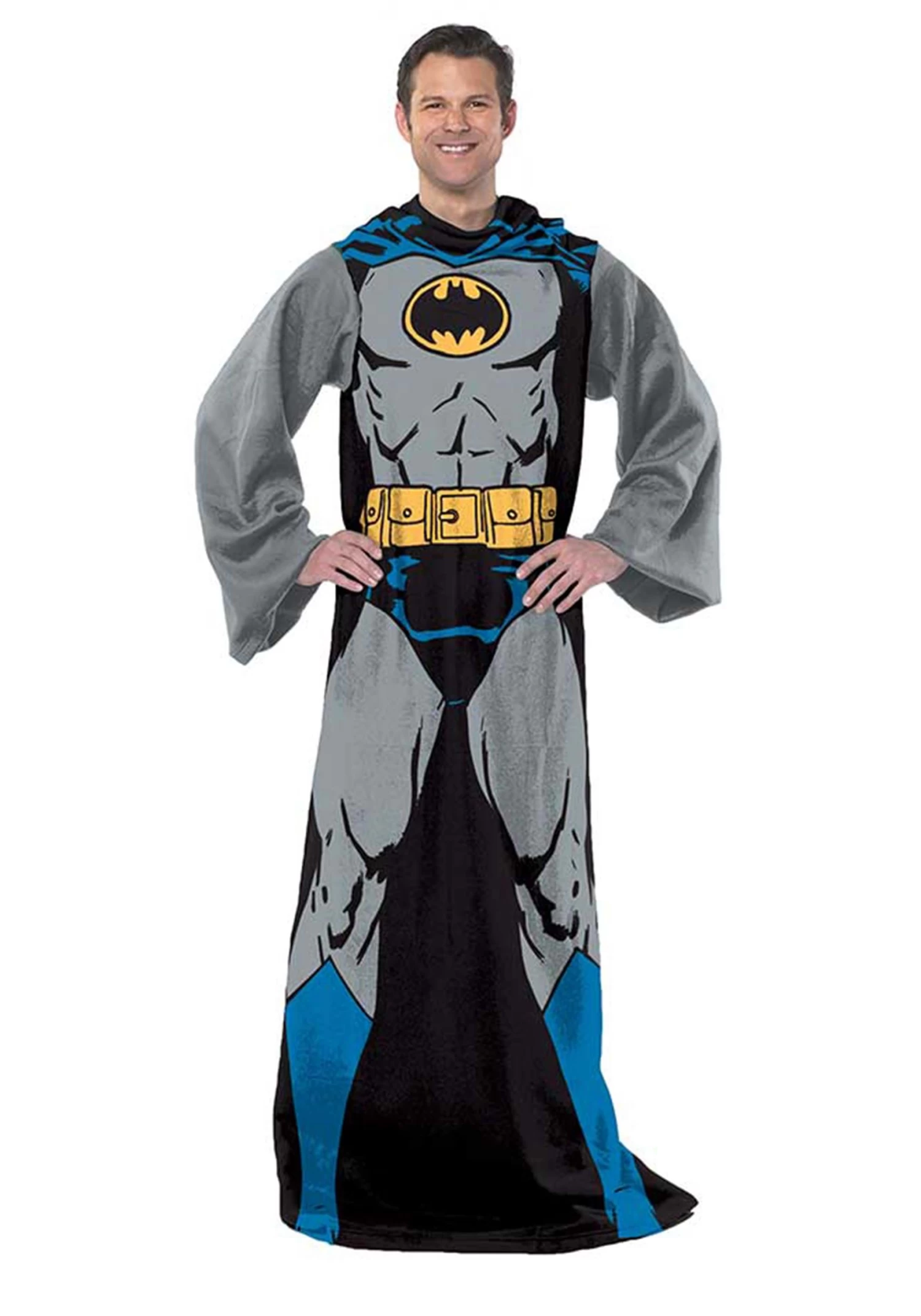 Finally, you can look just like your favorite hero while you lounge around on the couch. Rewatch the live-action movies or your favorite animated Batman series while you stay warm in this Batman Adult Silk Touch Comfy Throw Blanket. You’ll look ready to offer Bruce a hand in his fights with the Joker and the other supervillains terrorizing Gotham. However, you’ll be so comfortable that you’ll just let the professional handle the dirty work. Chances are you would just end up slowing him down anyways, so you might as well sit back, grab some delicious snacks, and enjoy the show.