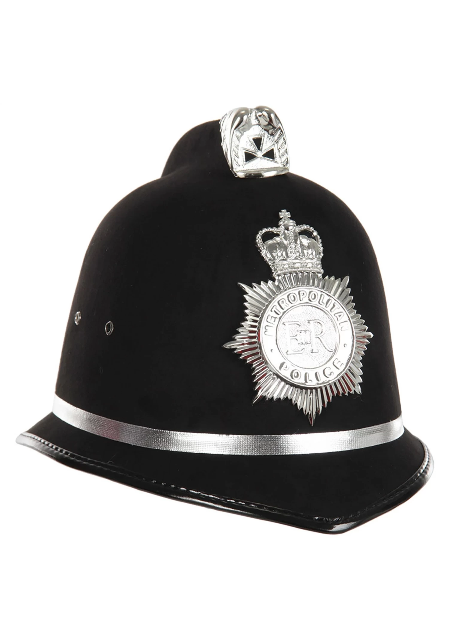 Now that you have your trivia, you need the accessory to match! This British Bobby Helmet of ours is 100% polyester and uses molded felt and an inner size-adjustment band to give you the perfect fit. Of course, it wouldn’t be a Bobby hat without that distinctive silver-tone metal crest and royal medallion on the front of the cap. Bring a flashlight, or maybe a tame horse, to pull the outfit together — and have your trivia practiced and ready to go at the punch bowl!