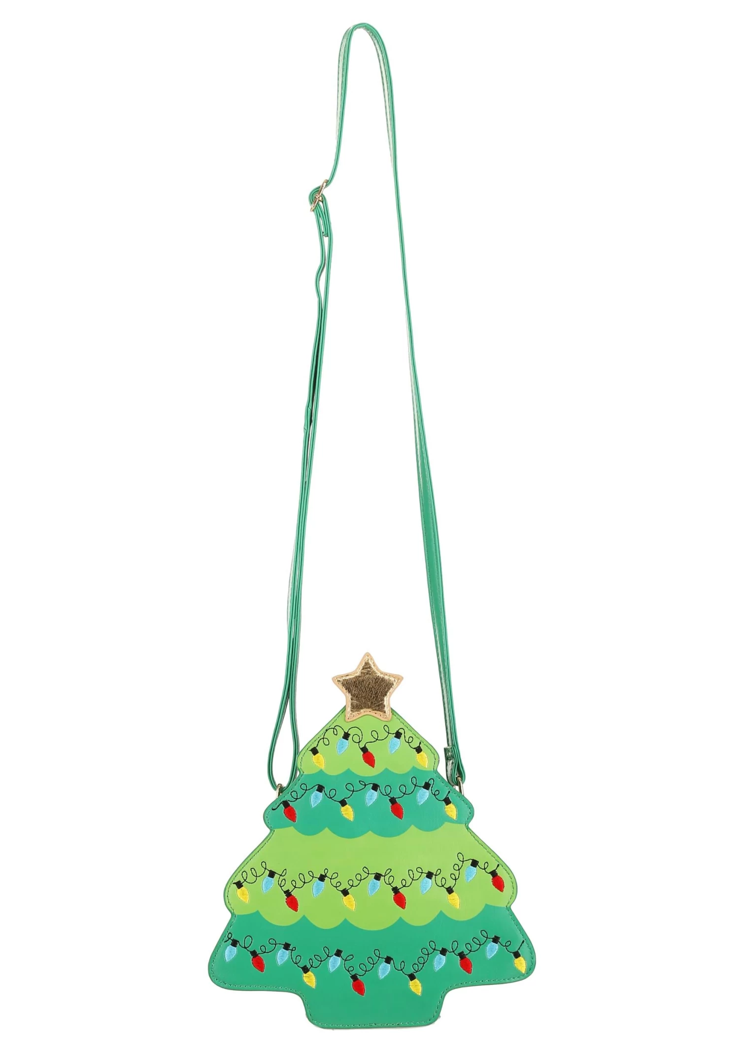 This delightful Christmas Tree is Made By Us, which means it was designed by our in-house creative team! The cheery Christmas tree zips at the top and has just enough room inside for the essentials. The adjustable strap can be slung over your body so you don’t have to worry about keeping track of your keys, wallet, and phone while you’re decking the halls! With a timeless Christmas light pattern and metallic star on top, you’ll be glad you thought of everything when your Christmas ensemble is holly jolly through and through!