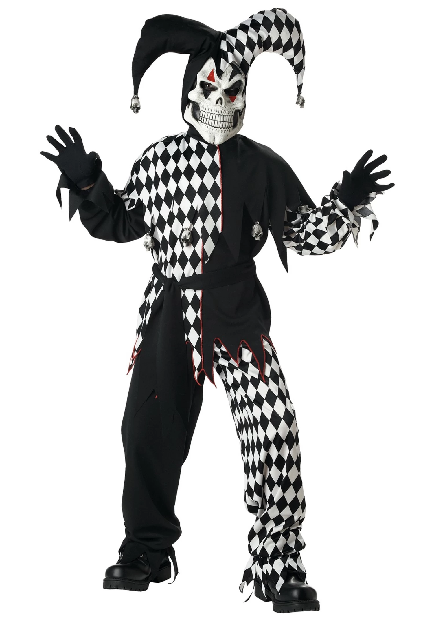 Sounds like he or she would enjoy, then, a dark take on a perennial classic. Your kiddo’s no fool; a classic jester costume has been done over and over again. The Kid’s Dark Jester Costume, then, offers all the iconic aspects of a Renaissance entertainer…with a serious edge. Let’s not beat around the bush, here; this costume is, well, creepy. But your little laugh-maker has a fine flair for the dramatic. And everyone loves a scare on Halloween, right?
