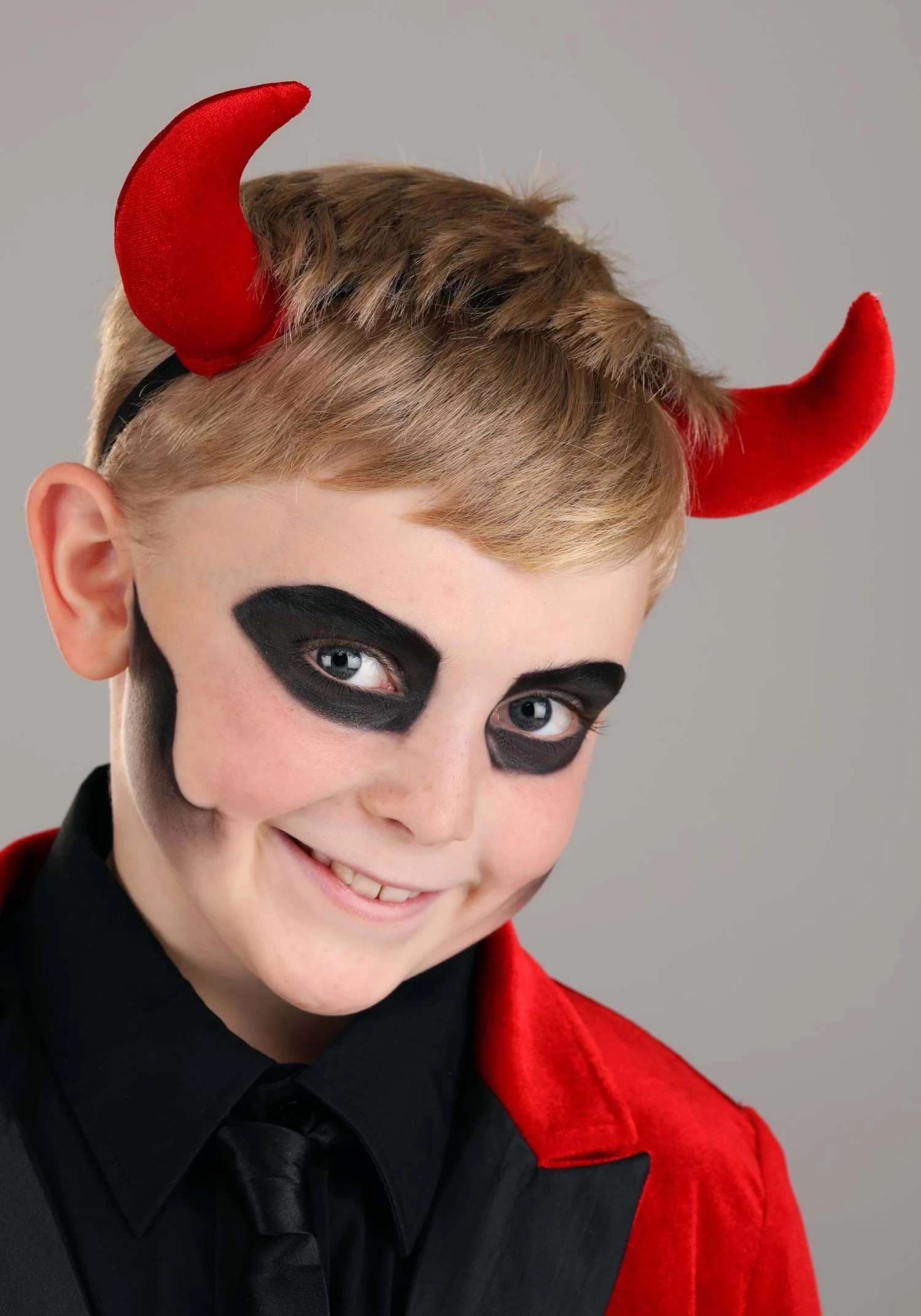 Be scarily stylish when you wear your exclusive Dashing Devil Costume for Boys! The soft red velour jacekt values at the front with values that are black to match the lapels. The front is decorated with two faux chest pockets and pocket flaps. The long velour tail sewn to the back of the jacket has a triangular point and conceals an inner wire that allows you to pose the tail as desired. Secure the fiber-filled horns around your head with the attached elastic band.