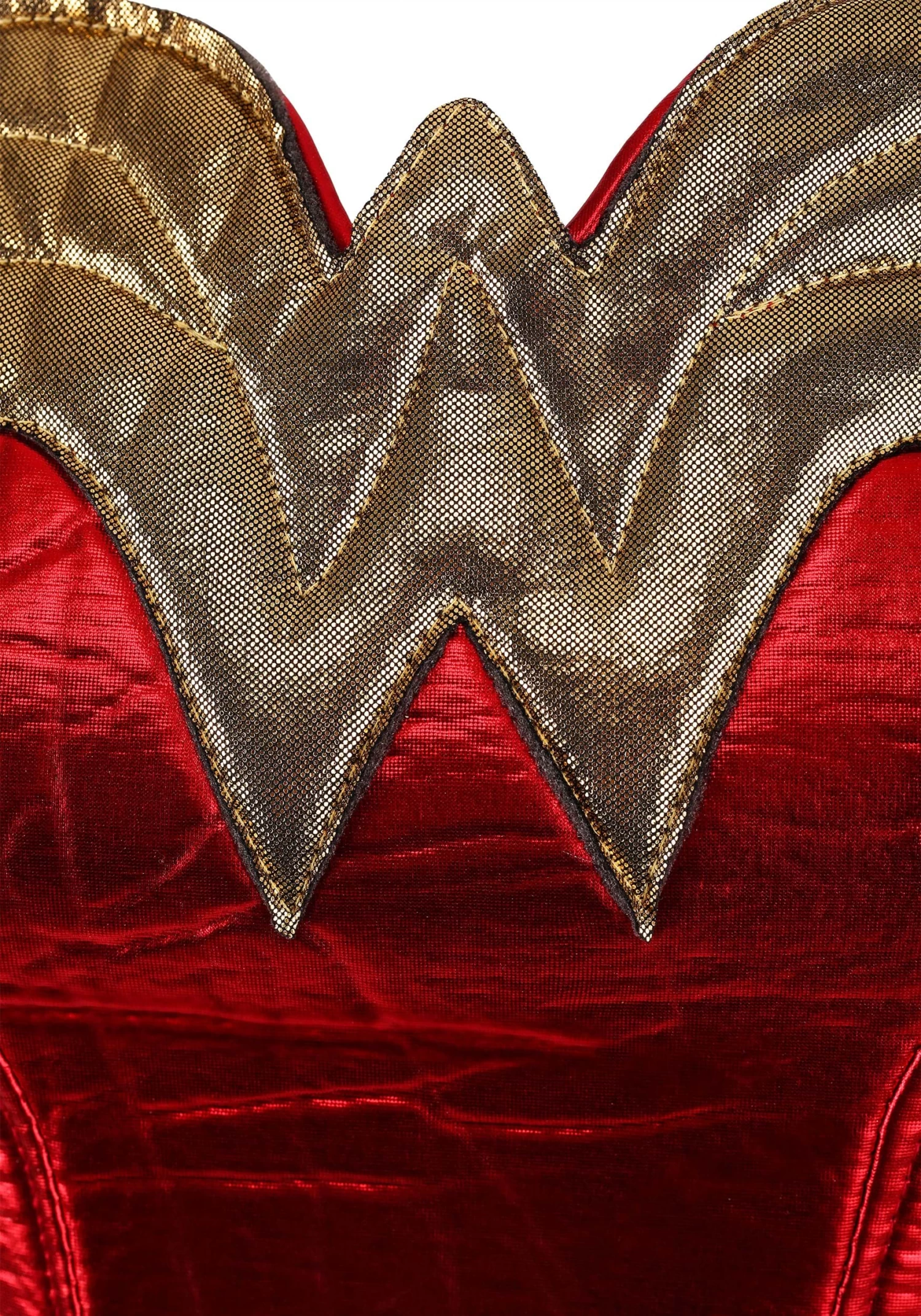 You might not get to vacation for years at Themyscira but you’ll be ready for the call when you don this eye-catching and versatile costume. It has dark blue leggings with stars along the side and a gold and red sweetheart neckline bustier, paired with the silver and gold gauntlets, and the golden crown with a red star. You’ll be ready to take on whatever challenges people are throwing your way. Who knows, maybe you’ll even figure out that shield launch!