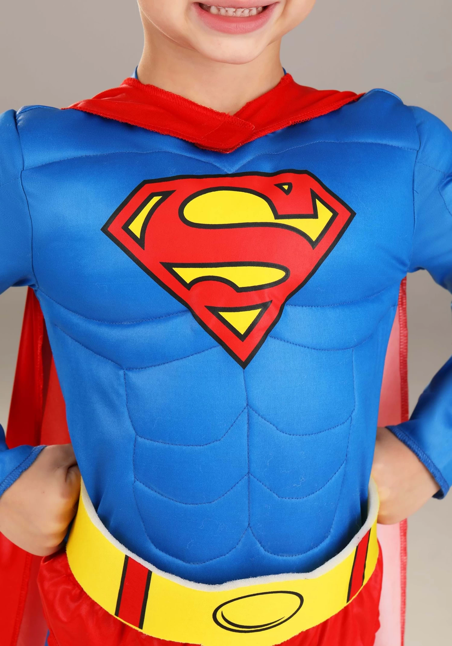 Your toddler will feel on top of the world in this officially licensed Deluxe Classic Superman Toddler Costume! The blue jumpsuit has super-impressive padded muscles sewn into the chest and sleeve area, as well as a big yellow belt that your toddler can rest his fists on when he’s doing the classic Hero Pose. A red and yellow Superman logo is impressively emblazoned in the middle of the chest. Red boot covers protect his feet when he’s rushing to fight crime, and a cape billows impressively when he’s flying to save the day. Extra-special detail: This suit has been proven to withstand up to 50 miligrams of kryptonite! Yes, we’re just that good.