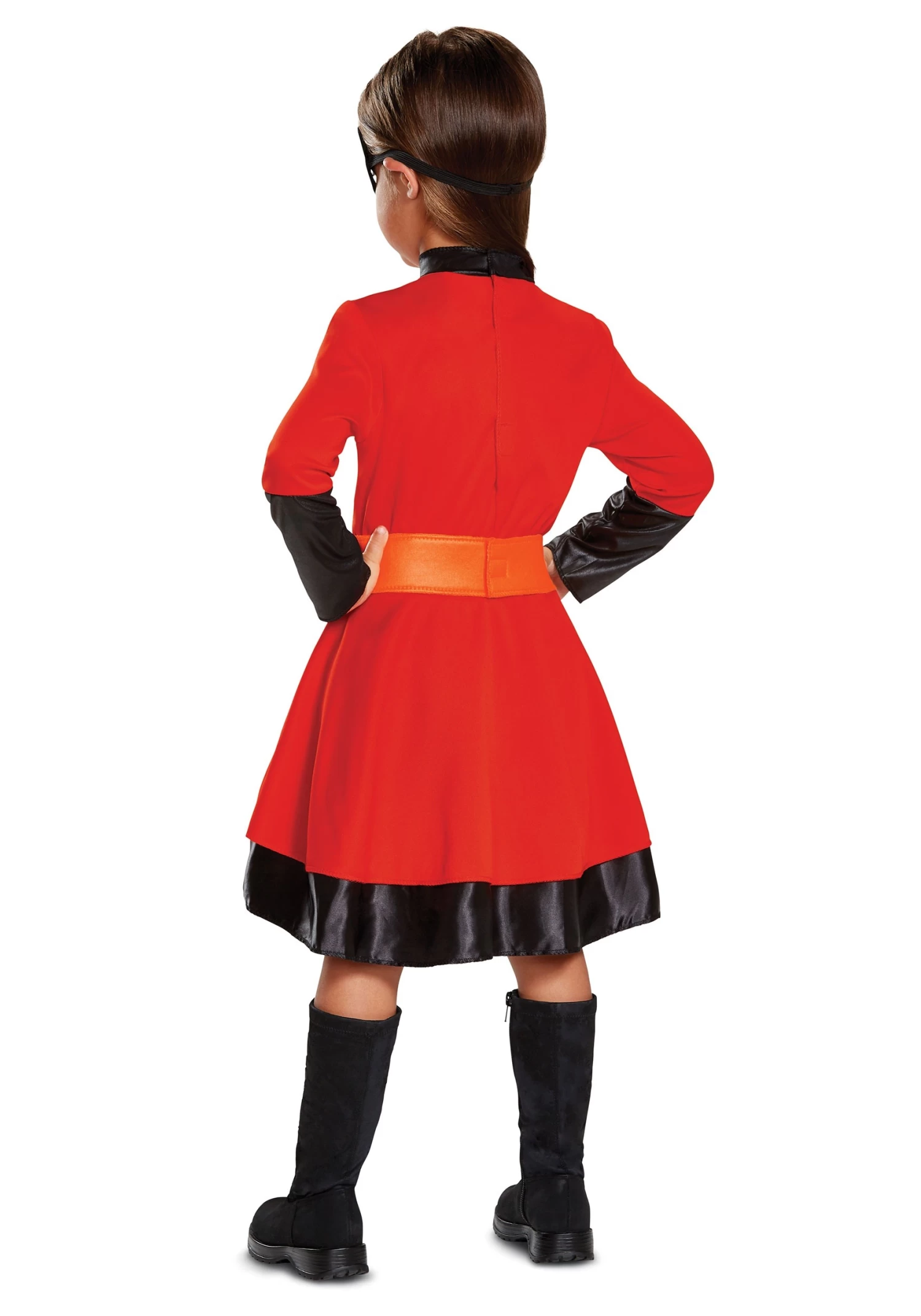 Your little girl will love transforming into the most powerful member of the Incredibles family with this Violet costume for toddlers. The costume is based on the outfit worn by Violet Parr from Incredibles 2. It’s a bright red dress that has long sleeves. It has the Incredibles symbol proudly displayed on the front. The sleeves end in black cuffs and the skirt has a black hem band. The costume also comes with an eye mask to help hide her secret identity (especially from her crush, Tony).