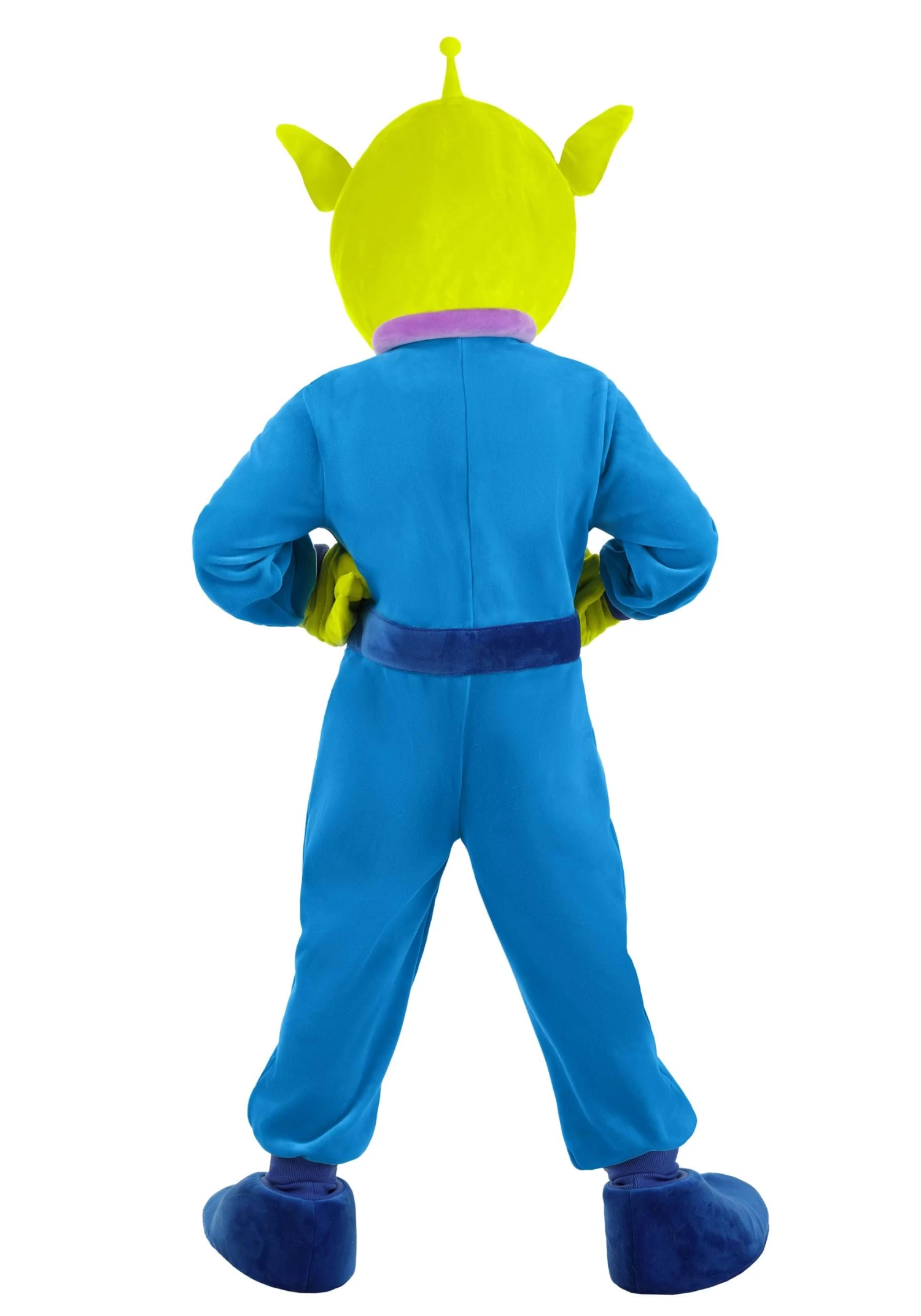 Cast your kiddo as one of the sweet characters with this Made By Us exclusive! Shaped from cuddly fleece materials, the four-piece ensemble offers warmth while trick-or-treating. The jumpsuit features a zipper down the front for easy dressing and an embroidered Pizza Planet logo patch for authenticity. Shoe covers and gloves provide alien footwear and a peaceful greeting, and a soft-sculpted hood based on the Aliens’ familiar smile completes the look.