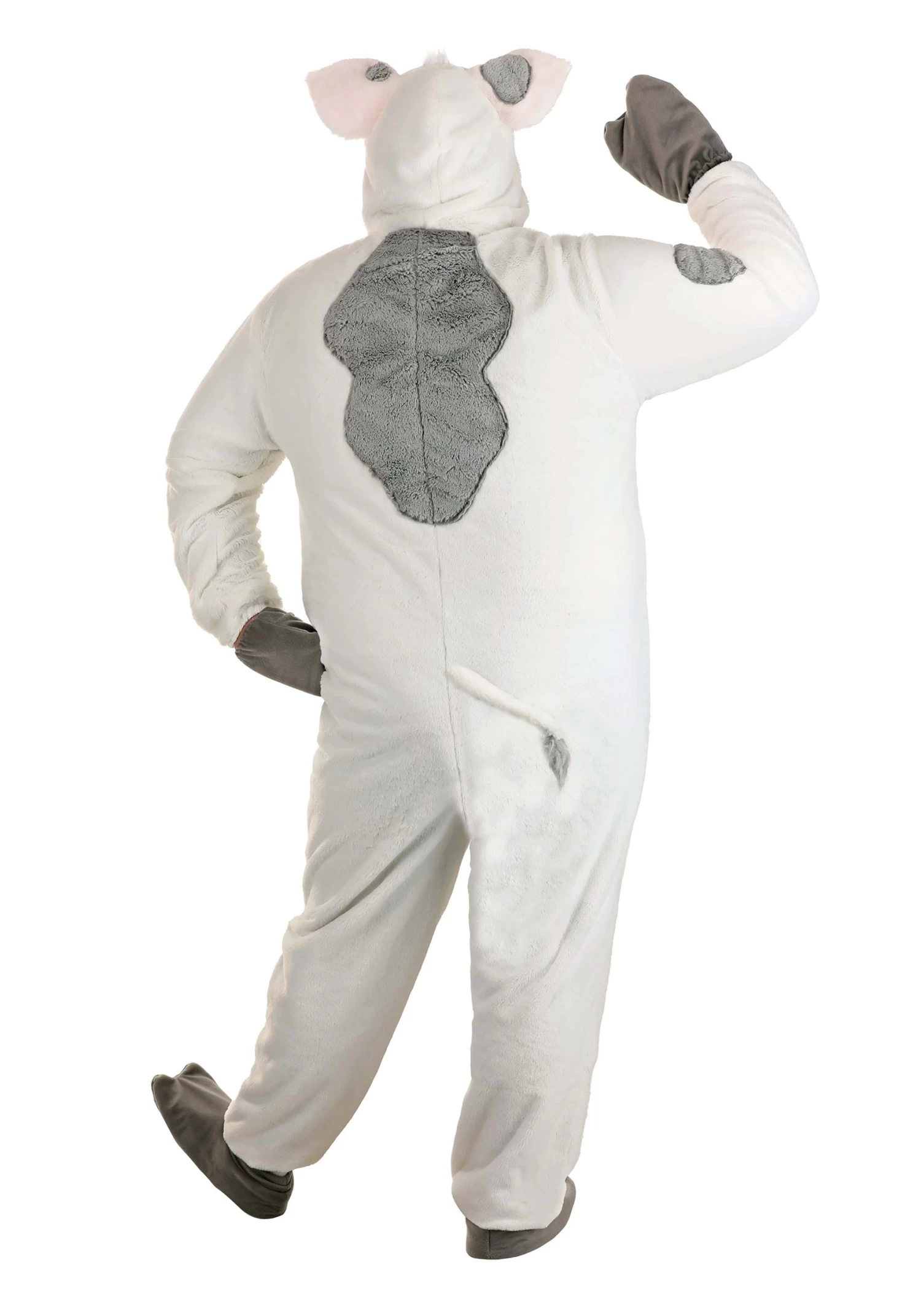 You’ll start with the soft velour jumpsuit that zips straight up the front. It is designed to look like the white piglet and his gray spots. Pull up the hood to let your floppy ears flail around while you’re boogying about your own island. Meanwhile, your embroidered eyes and sculpted snout will easily spot all the snacks your friends and family will be throwing your way!