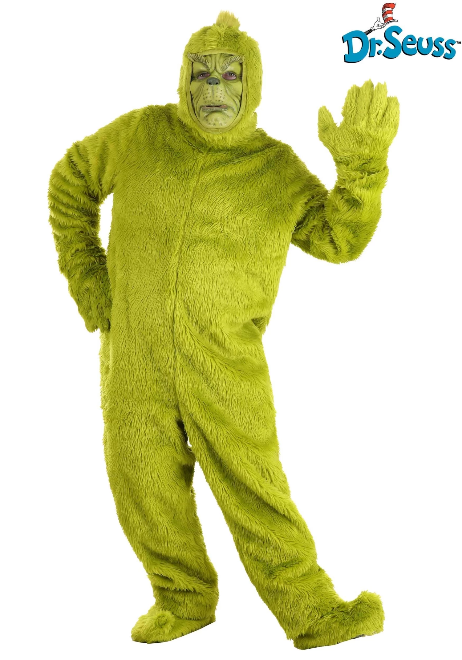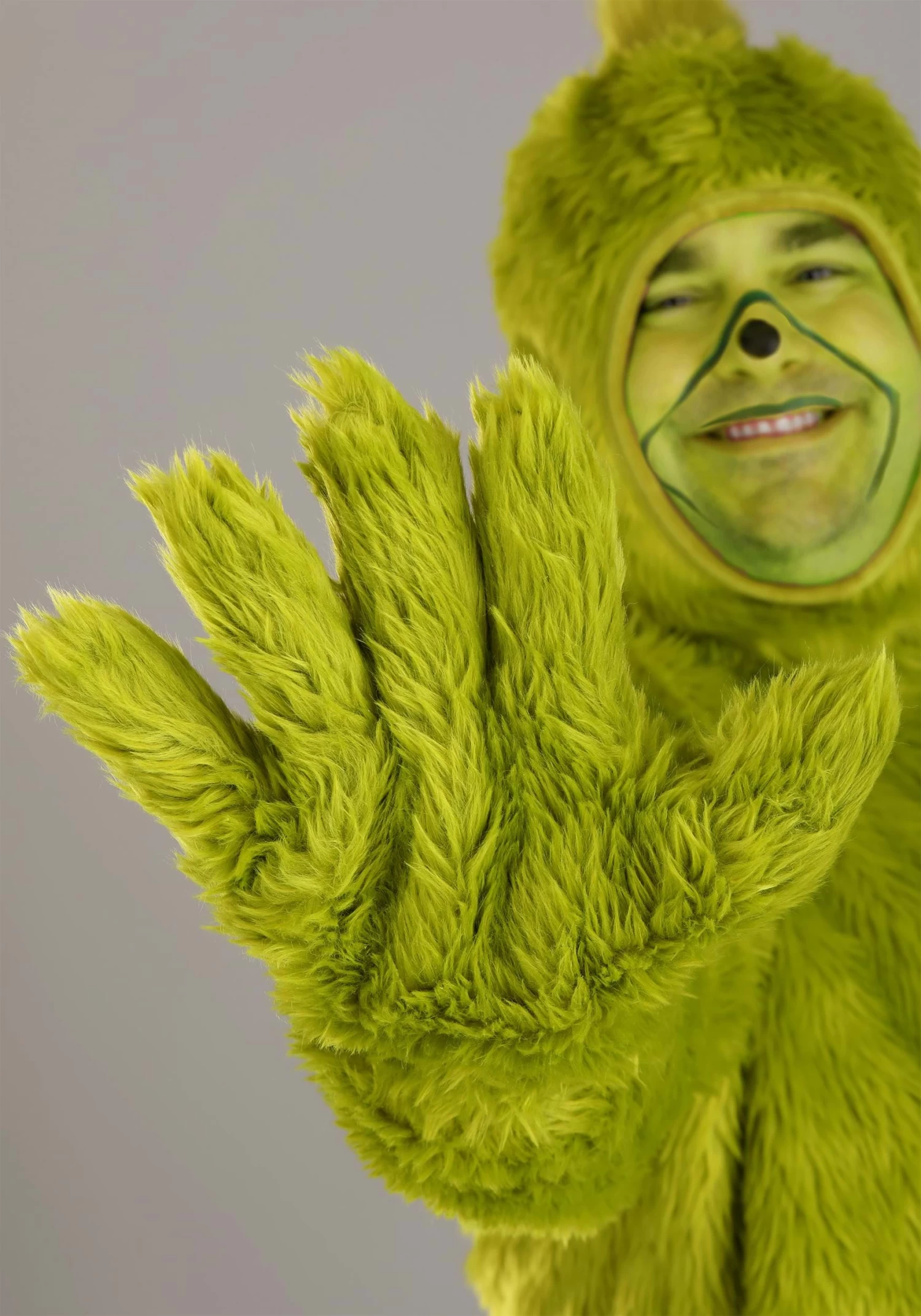 Fear not, friendly Grinch, for we have exactly what you’re looking for in this officially licensed Dr. Seuss Grinch Plus Size Open Face costume for adults! Naturally, this jumpsuit starts with slipping your tootsies into the bottoms and strapping the footies under your shoes. Slip your arms into the rich, green fuzz and zip your costume up the back. Finally, pull the hood up over your head and feel the topknot of faux hair at the top. With no mask in the way, you have the whole Grinch look ready and clear days (and nights) ahead of you! (Of course, you can also add one of our Grinch Masks to add to your transformation when you’re ready for picture time.)