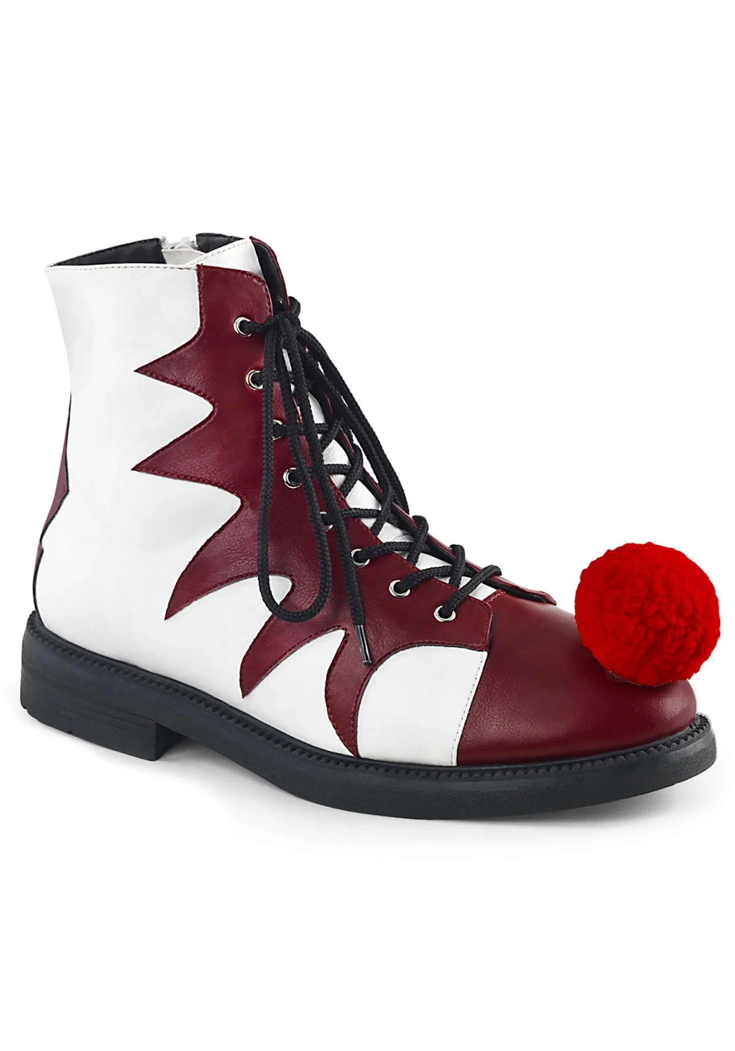 There once was a clown named Flimsy the Clown. He was much like any normal clown. He performed at carnivals and circuses. He lived with the other circus performers, he rode on the Merry-Go-Round during his break, and he certainly ate his fair share of peanuts and corndogs. He was a rather happy clown, until one fateful day! A careless patron spilled fruit punch on Flimsy’s shoe. The careless patron didn’t even apologize. He laughed at Flimsy’s misfortune and carried on his way. Flimsy went back to his tent to try to clean the stain out, but found it impossible to return his shoes to their former glory! He took on the name Flimsy the Fiend and began hunting down any person drinking fruit punch at the circus grounds. No one escapes his fiendish plot for revenge! And he used to wear shoes… THAT WERE JUST LIKE THESE ONES! WooooOOOooooOo!