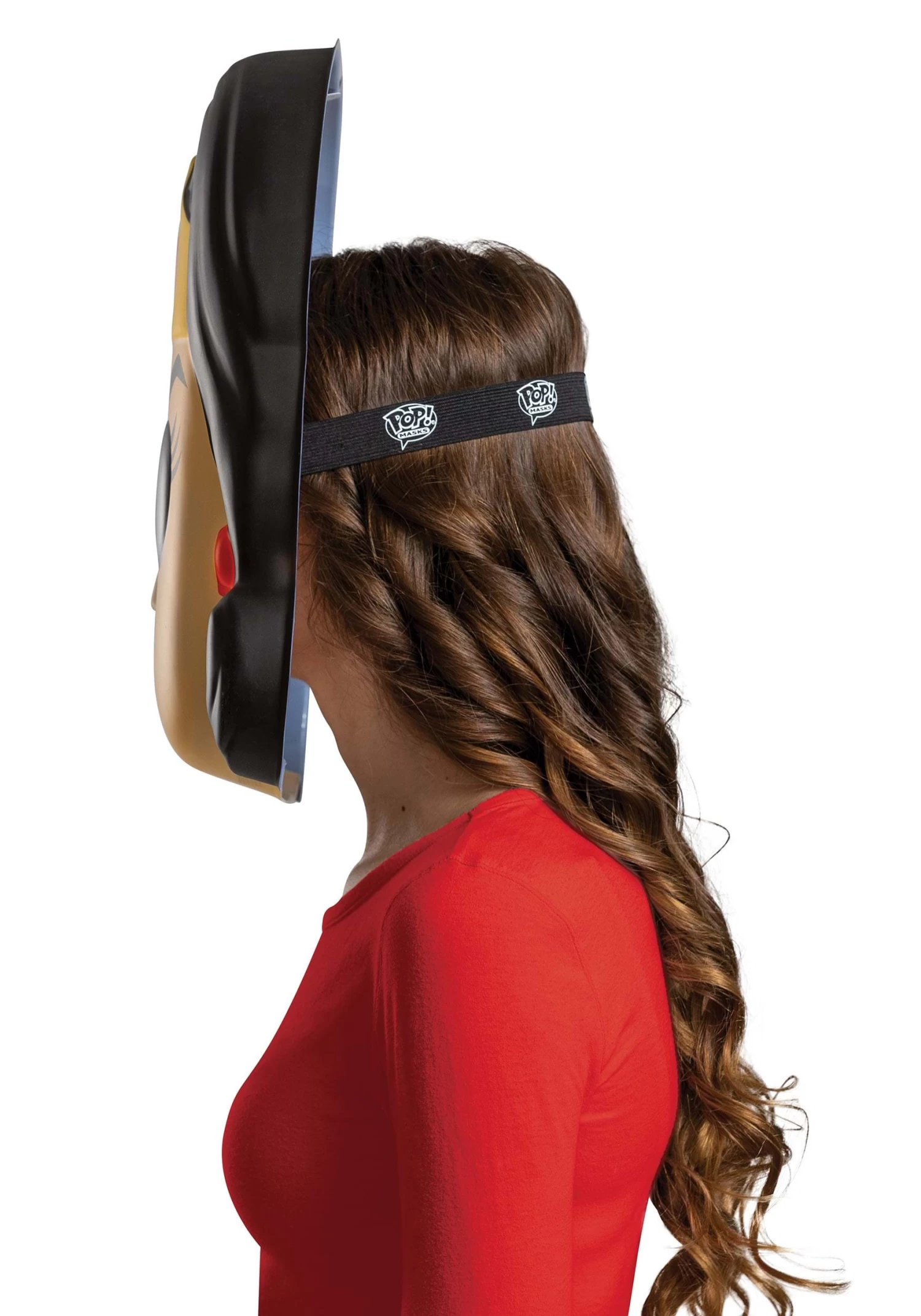 Make bad guys fear you in this officially licensed Funko POP! Wonder Woman Mask for Adults! The oversized molded mask has cartoon-style eyes and eyebrows, a yellow headband with a red star, and a short black hairdo. A viewing port just above the raised nose lets you (sort of) see where you’re going.
