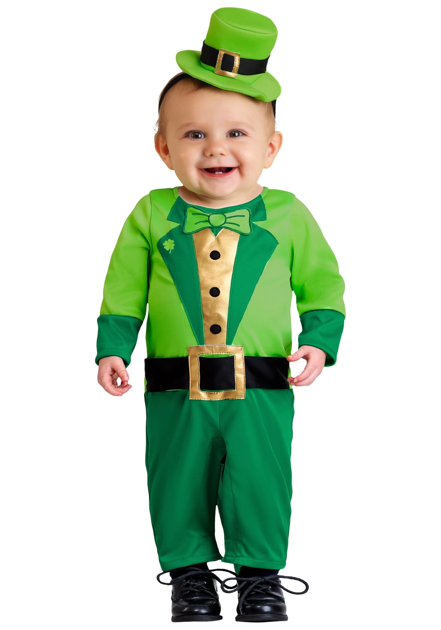 Channel the glorious history and ask for the luck of the Irish when you let your wee babe join the order of the aes sídhe—the people of the mounds. There are a ton of different types, but the leprechaun is probably the most famous. And, when you dress your baby in this Made by Us Leprechaun costume, you’ll know exactly why. This costume includes a green onesie made of soft jersey fabric and featuring tuxedo jacket print. The hat is green and black jersey with a gold vinyl buckle. You’ll both feel blessed all year round with this adorable attire.