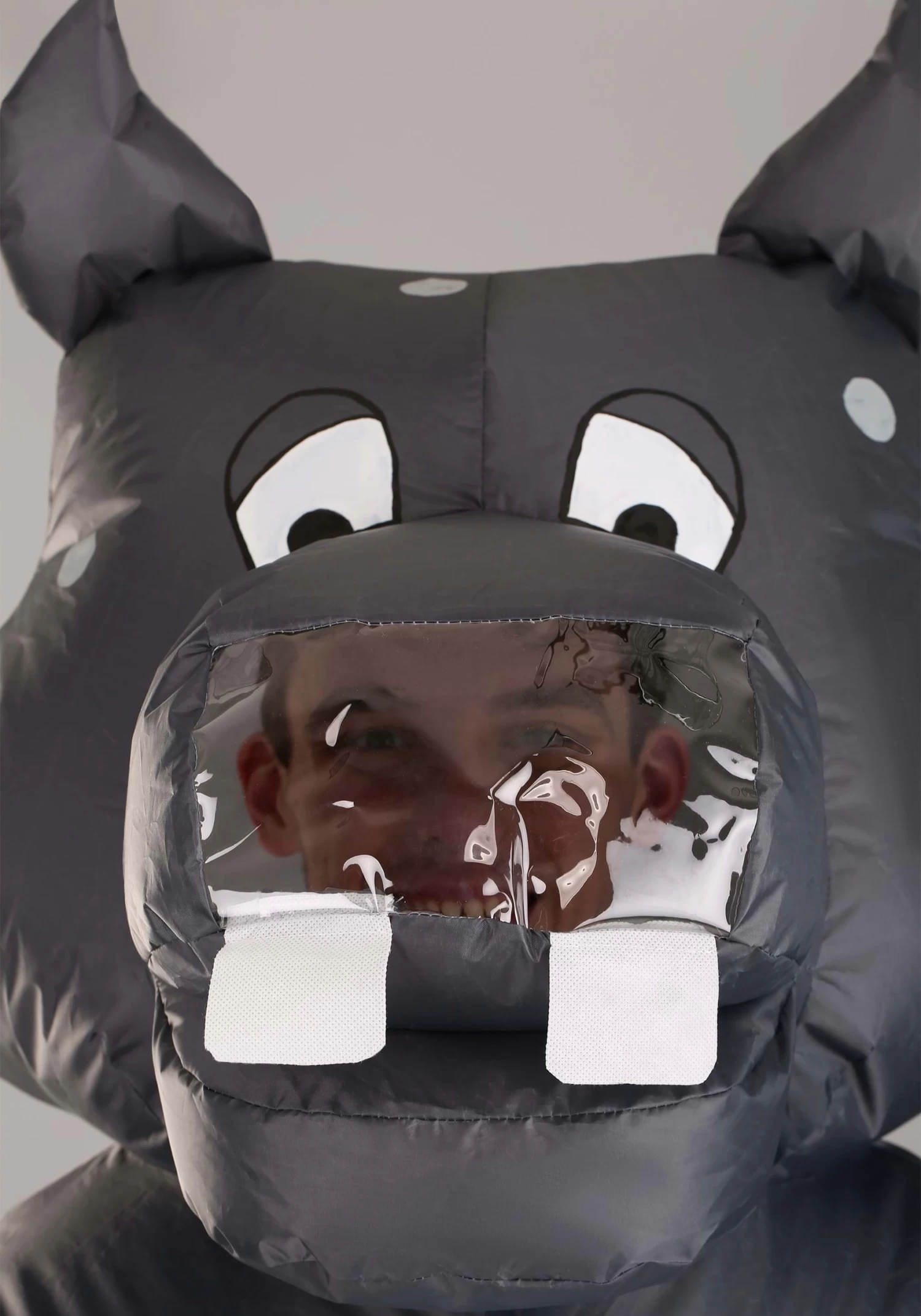 Satisfy that craving to win best in show with this Adult Inflatable Hippo Costume! This exclusive Made By Us inflatable jumpsuit addresses every challenge on your list. Made of woven polyester fabric and featuring printed graphics, you take on the appearance of a hippo in no time. Meanwhile, the attached fan gives you the robust shape of the semi-aquatic mammals. Getting into the immersive costume is made easy with a zipper on the back that stretches from the top of the legs to the neckline—simply step inside, pull it over your head, and zip it up! Elastic wrist and ankle cuffs help keep the air from escaping while the soft-sculpted ears, muzzle, and teeth ensure that you look like a hippo. See how partygoers react to your transformation through the clear plastic window located on the costume’s nose.
