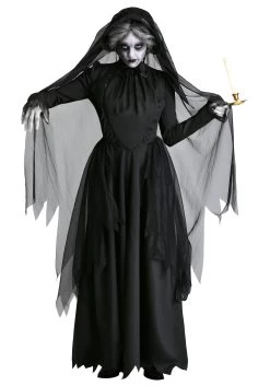 When it comes to dressing up as a ghost, you’ve got options. You could go the lightweight way, less spooky. Or you could fully commit to the spooky side of things with a lady in black costume. Pair this costume with an eerie gray wig and ghastly pale makeup and you’re sure to cast a delightful feeling of gloom wherever you go!