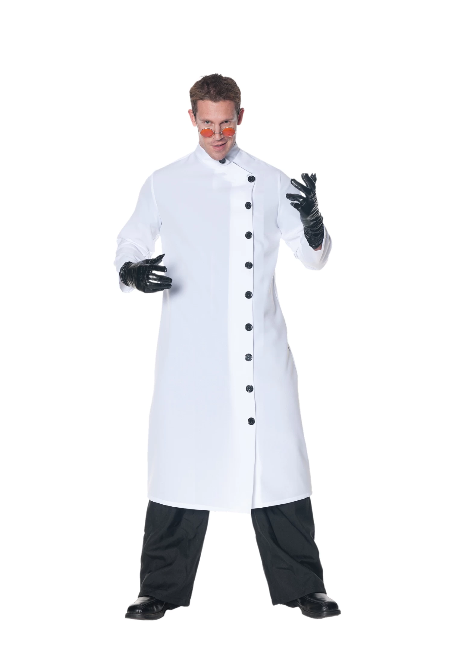 So, you don’t have to lease that drafty old fortress yet. You don’t even need that humpbacked assistant completing your dark hearted whims. The title of mad scientist is at your fingertips. The only real requirement for becoming one is a white lab coat, reckless abandon and perhaps the laugh that bespeaks your insanity. This costume should get you started down that road, no problem.