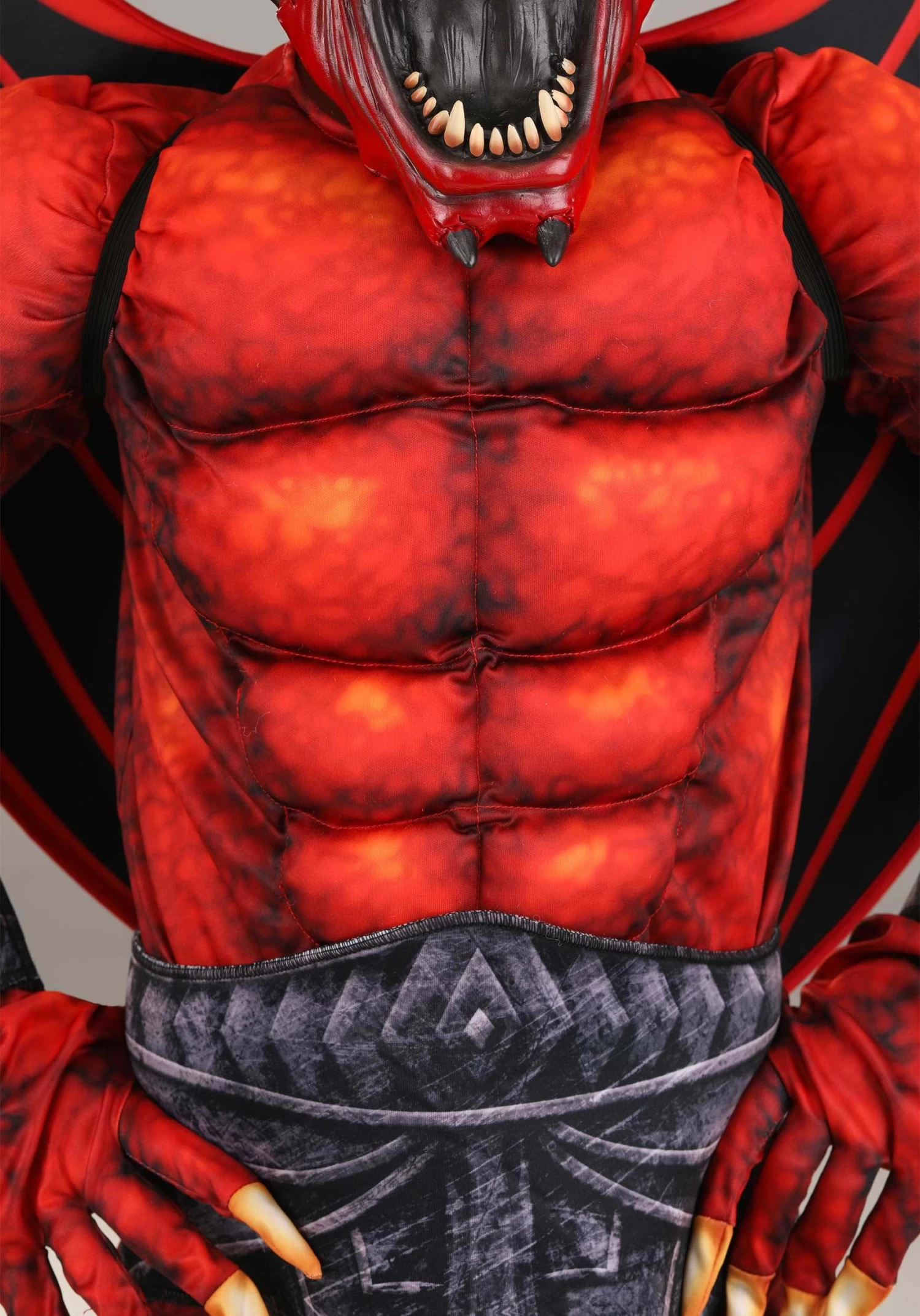 Our expert costume designers basically sold their souls to create this terrifying demon costume. Everything your youngster needs to be the definition of “scary” is included with this ensemble. The jumpsuit is covered in an all-over print of a muscle-bound demon body. The color of the demon’s skin can only be described as smoldering fire. The jumpsuit has soft-sculpted fiberfill padding on the chest and the shoulders to add to the demon’s terrifying physique.