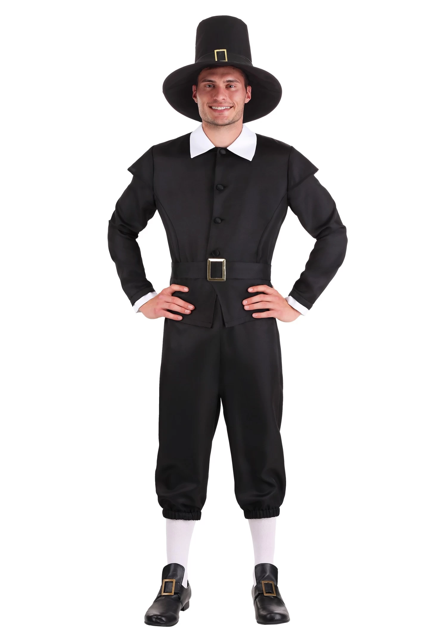 This Made by Us costume looks like it’s been pulled straight out of the history books. The jacket values up the front and is accented at the waist with a belt that secures at the back with a hook and loop strip. Cropped, tapered pants are layered underneath the jacket for an instantly recognizable colonial look. This costume is topped off with a tall pilgrim hat with a memory brim that’ll make you Thanksgiving ready.