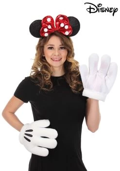 If you need some impressive accessories to go with a Minnie Mouse dress, try this Minnie Glitter Headband and Gloves Set. The red and white polka-dotted bow on the headband matches Minnie’s outfit, and the glitter ears are perfect to add some sparkle. This set would also make a quick costume with any black dress or red shirt to still get that cute Minnie aesthetic. You could also pair this with a Mickey set and match someone else to make a fun couple’s costume.