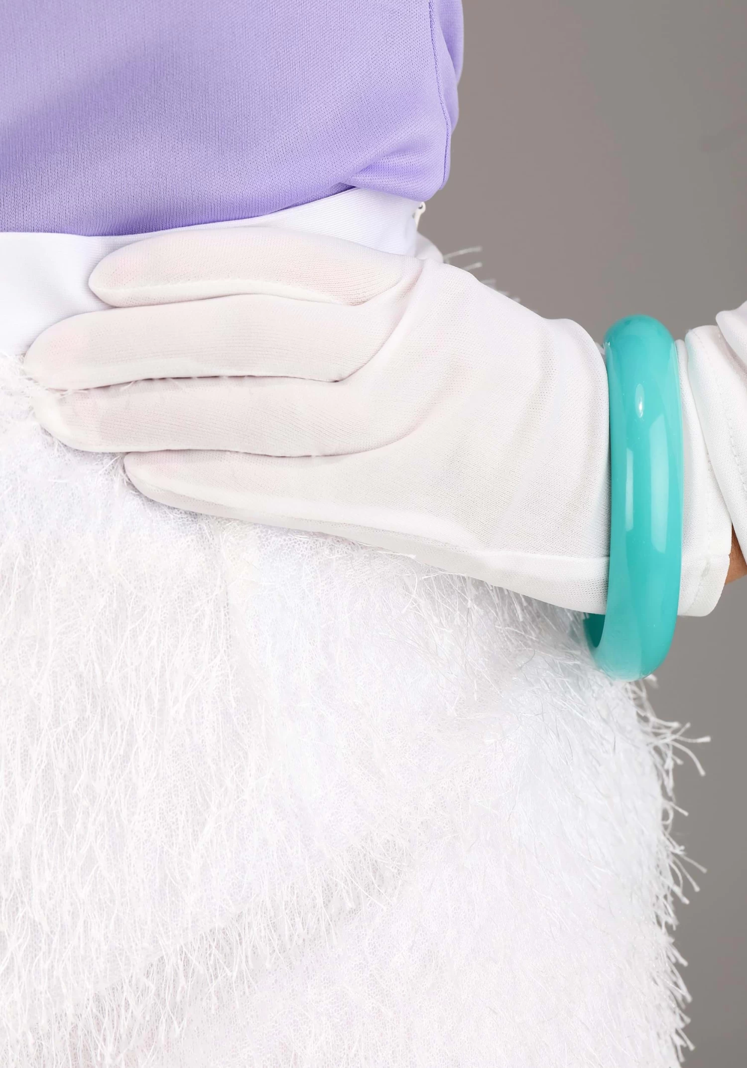 Tights and white gloves extend the look to your hands and feet. A fluffy skirt captures the look of Daisy’s feathers and includes a perky tail on the back. A plush hat with a detachable bow completes the outfit from head to toe, and Daisy’s teal bangle bracelet is the finishing detail. You’ll be ready for your big break as soon as you put on this adorable costume!