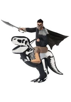 … Yep. Check outs. It turns out that when you climb into this Skeleton T-Rex Ride On Inflatable costume, you’re instantly either the awesome savior or the insidious villain. Become a necromancer who has given life to the prehistoric beasty when you climb into this suit that has elastic at the ankles and waist. Flip on the fan and the dark bottom of the costume will puff up to life, giving the look of a miniature dinosaur skeleton under your faux legs! Flaps at the bottom cover your feet to maintain the undead illusion. All you need to decide is if you’re a prehistoric hero or a king on the rise!