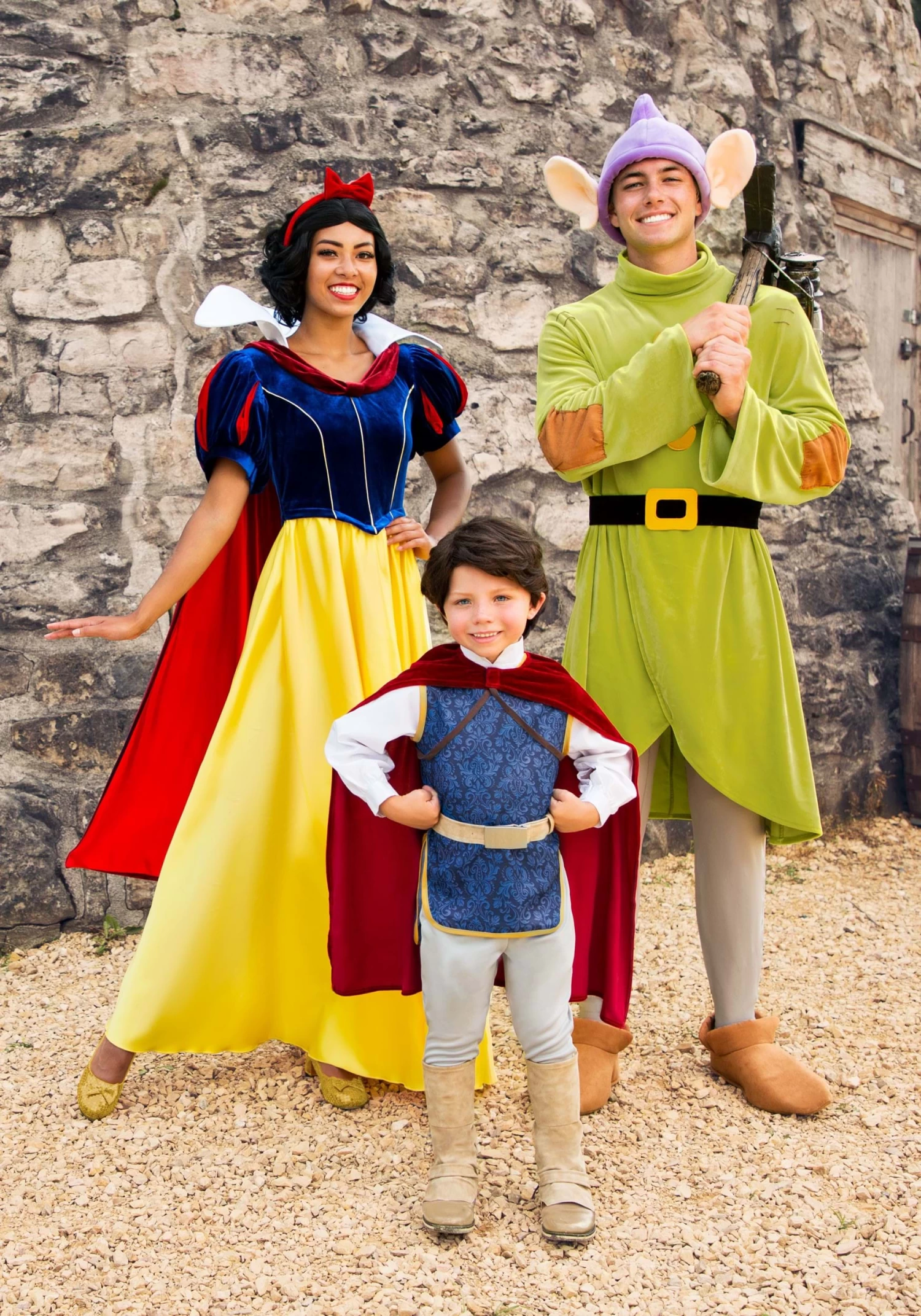 Whether you plan on riding off into the sunset with a prince or dancing the night away with seven dwarves, you’ll feel like you stepped out of a fairy tale when you slip into this Snow White costume! This fully licensed look has the classic blue bodice with puffed blue and red sleeves trimmed in gold and topped with a tall white collar. The long yellow skirt is perfect for twirling. Topped off with a cape and a red bow, you’ll be ready for your fairy tale adventure as soon as this costume arrives!