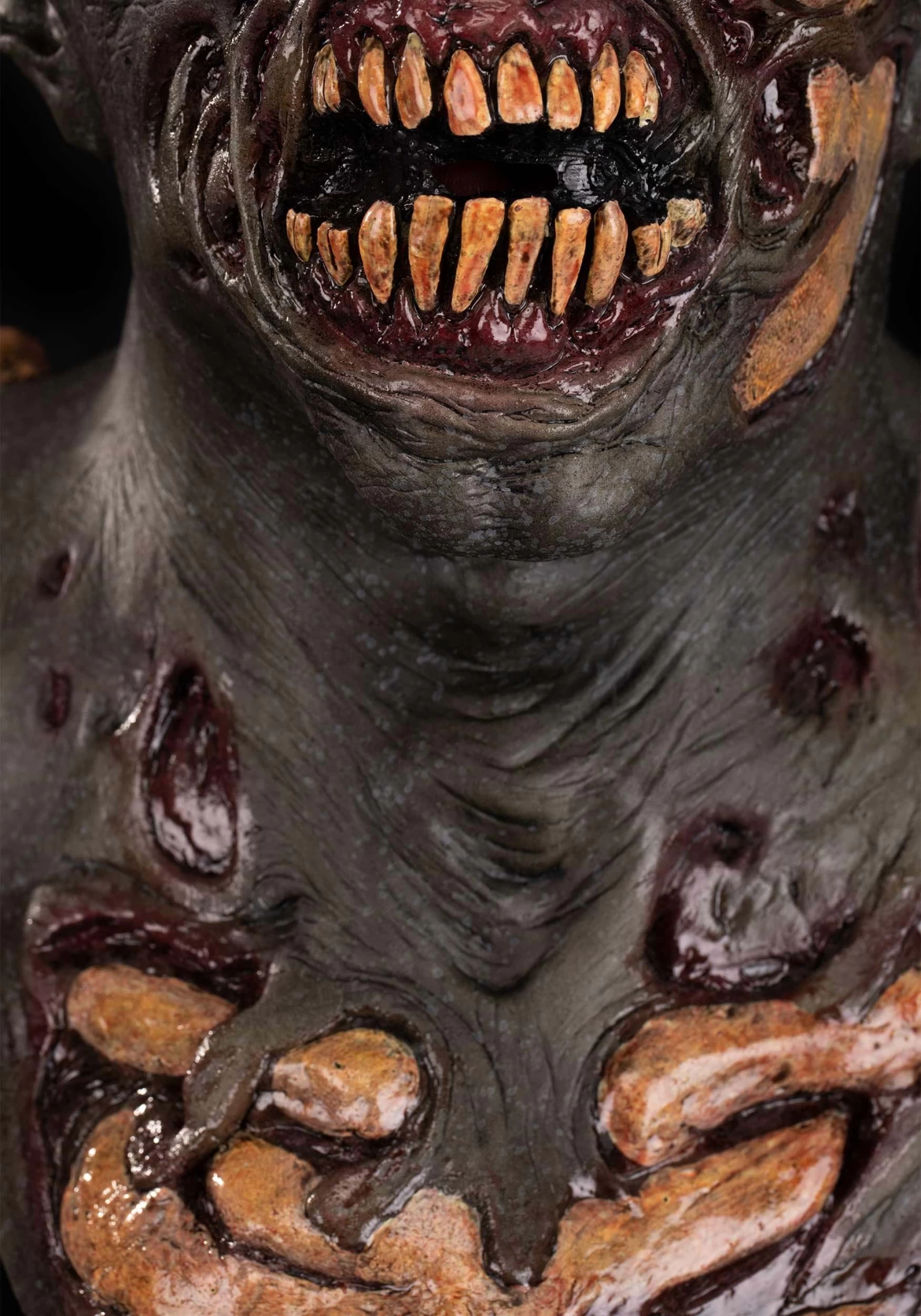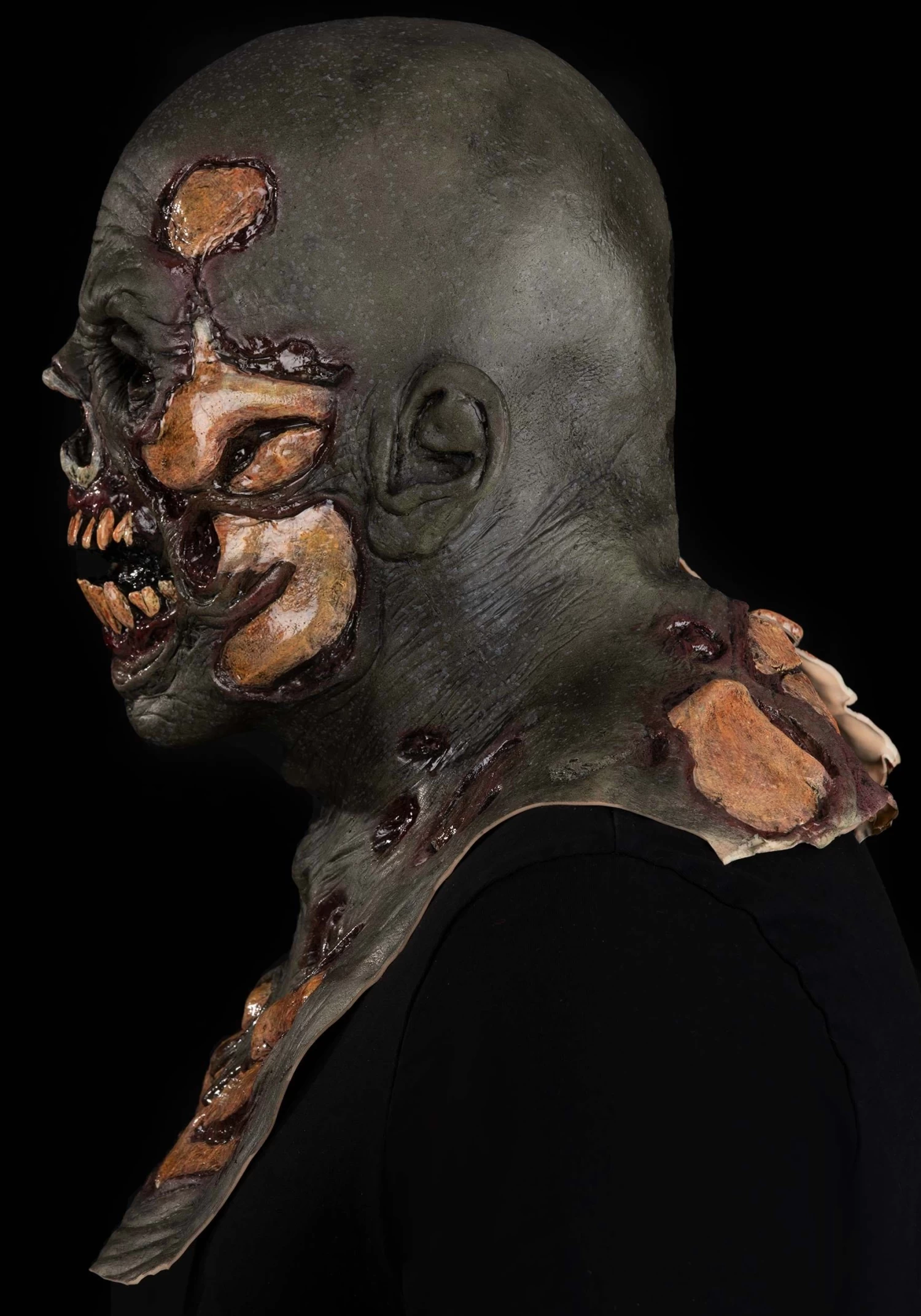 Have the grossest costume you can dream up when you wear this Stench Zombie Mask for Adults! The molded accessory covers your entire head, neck, and upper chest, and is painted to look like a snarling zombie with yellowing teeth, rotting skin, and visible rib bones.