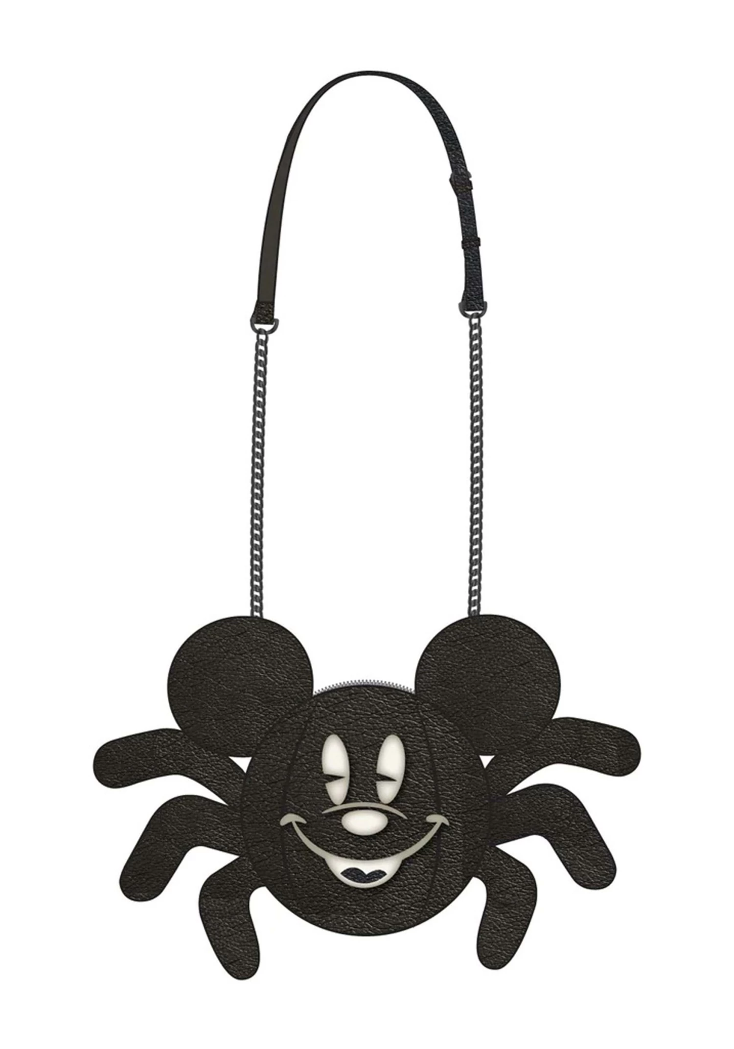 This officially licensed Stitch Shoppe by Loungefly Spider Mickey Crossbody is an ideal accessory for costumes and everyday autumn outfits alike! The black vegan leather bag has a round body decorated with 3D mouse ears, six fiber-filled spider legs, and Mickey’s smiling face. The top of the bag features a zippered closure and the clip-on shoulder strap is length-adjustable.