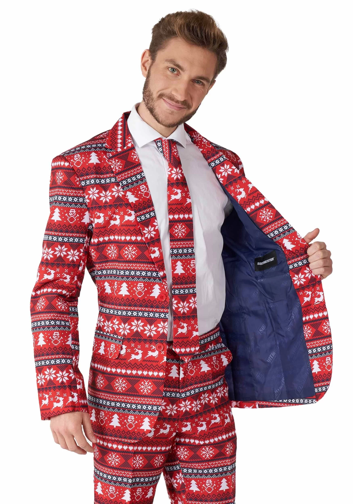 However, you can easily bring this festive trend to the next level. If you really want to feel snazzy while sipping on eggnog and singing carols, you might want to look into purchasing one of our holiday Suitmeister ensembles. Sure, it’s not a knitted sweater, but this nordic print is sure to make an impression once you arrive at your local holiday party!