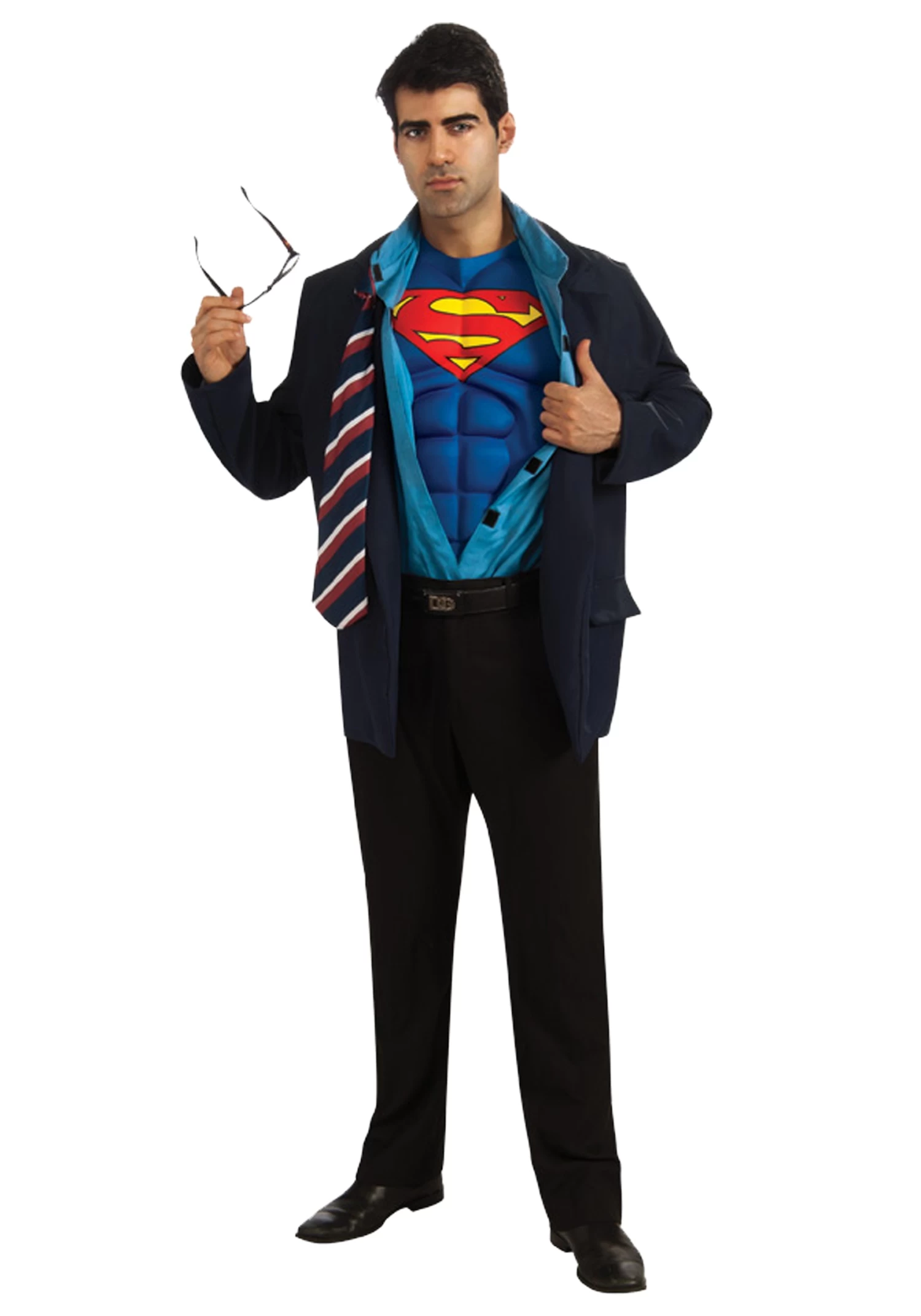No one will recognize you in the Navy blue jacket with reveals your secret identity via Superman muscle chest piece, below. The black glasses finish off your ensemble that is sure to psych out everyone at Who knows, if you play the part well enough, Superman may even decide he needs a doppelganger out in the field. Just don’t try to pull one over on Lois Lane—she’s the new head of Search Engine Optimization, and she’ll be onto you.