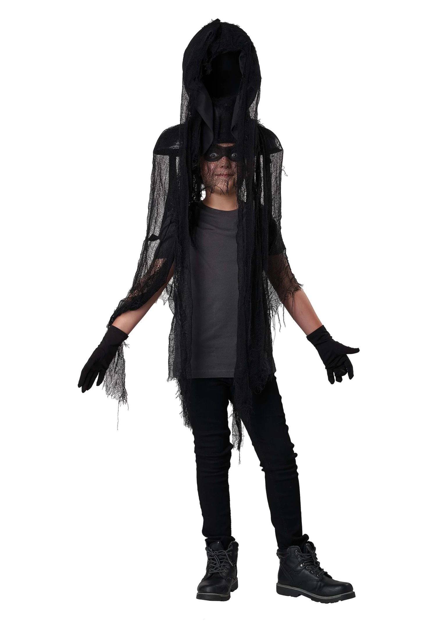 Making sure you are dressed right for any occasion is very important, which is why we recommend setting yourself up right with this Kid’s Tall Evil Spirit Costume. The included robe and hood-bearing hat are all that you need to make yourself look like the imposing figure of doom and death that you always wanted to be. The dark black color of this costume will be naturally frightening, since it will hide your movements and help you blend in at night. The tattered shawl will add even more wispy, spirit-like feel to this costume. The empty hood is attached to a frame that straps comfortably and securely to your shoulders, so you won’t have to worry about it falling off or becoming a burden. The only other thing that you need to make this costume perfect is the perfect ghostly, raspy voice to intimidate the living!