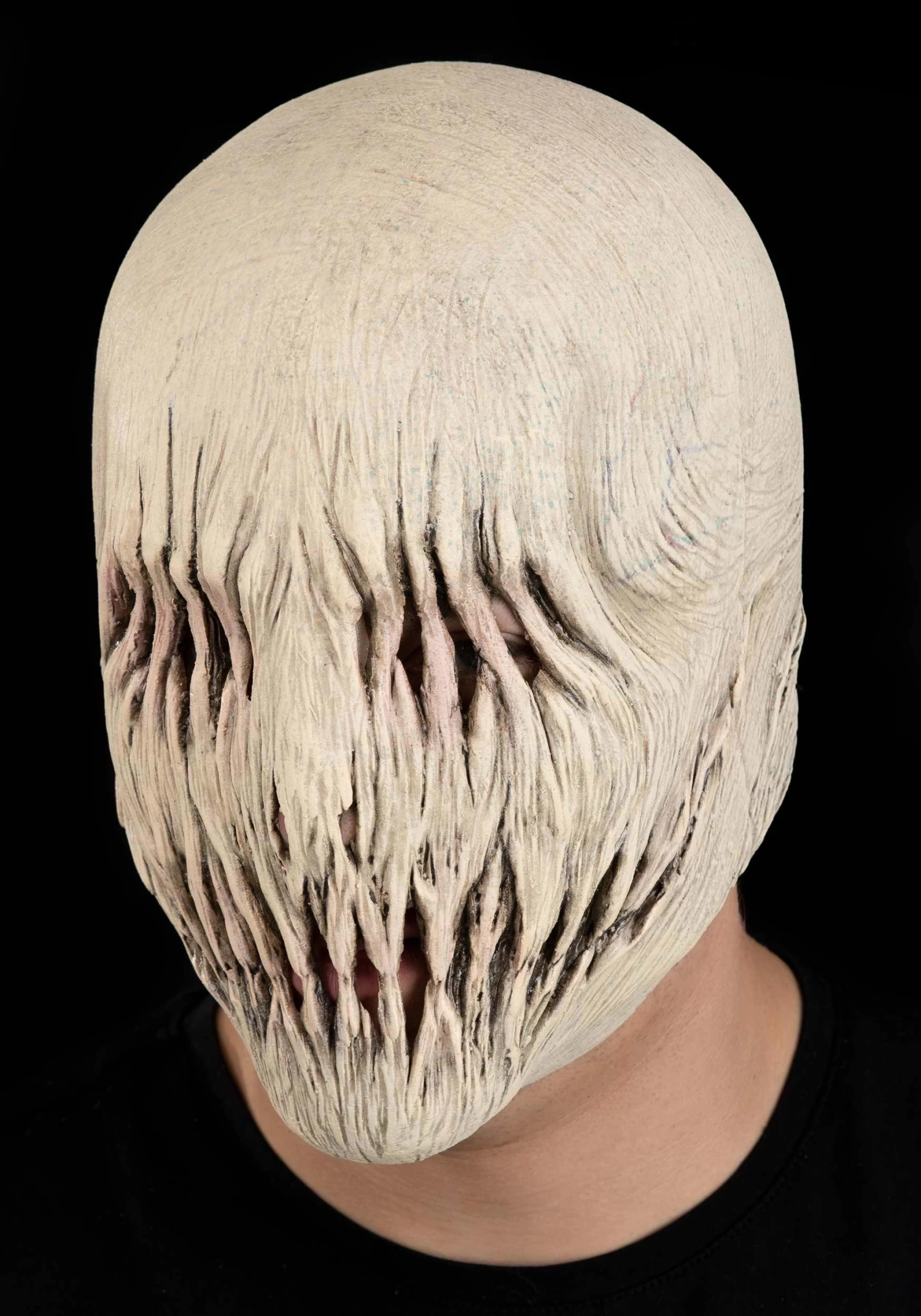Chills and screams abound when you wear this The Pale One Mask for Adults! The uniquely creepy mask covers your entire head and is molded to look like a hairless face with ghostly, weathered skin. Instead of eye sockets, slash marks in the “skin” give you viewing ports. The mouth also is covered with slashed skin detail, giving it an unsettling appearance.
