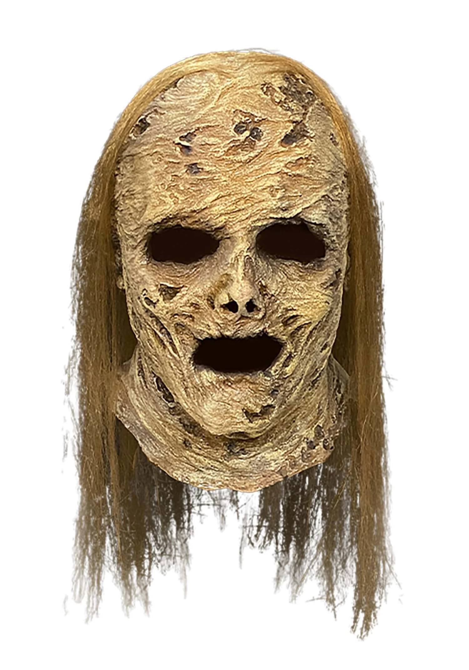 This Walking Dead mask is crafted by the folks from Trick or Treat Studios! They have an undying devotion to everything horror, so they went to great lengths to get this mask just right. The mask is molded out of latex materials and has faux hair attached to the top. It takes tons of details straight from the AMC series. The mask is one size fits most and is the perfect start to any walker cosplay.