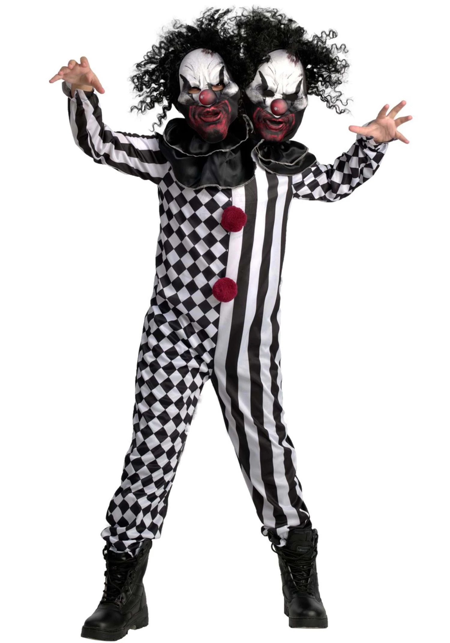 All right, tell us. What is scarier than a gruesome clown running at you in the dark while yelling a blood curdling laugh? That’s right, giant spiders! Oh, you thought we were going to say a gruesome clown with two heads running at you in the dark while yelling twice as many blood curdling laughs? Well, now that we’re both thinking it, yeah that is much scarier! Get your child into the frightful spirit and have a laugh while doing it with the Kid’s Two-Headed Clown Costume. The scares come in a double dose for twice the fright!