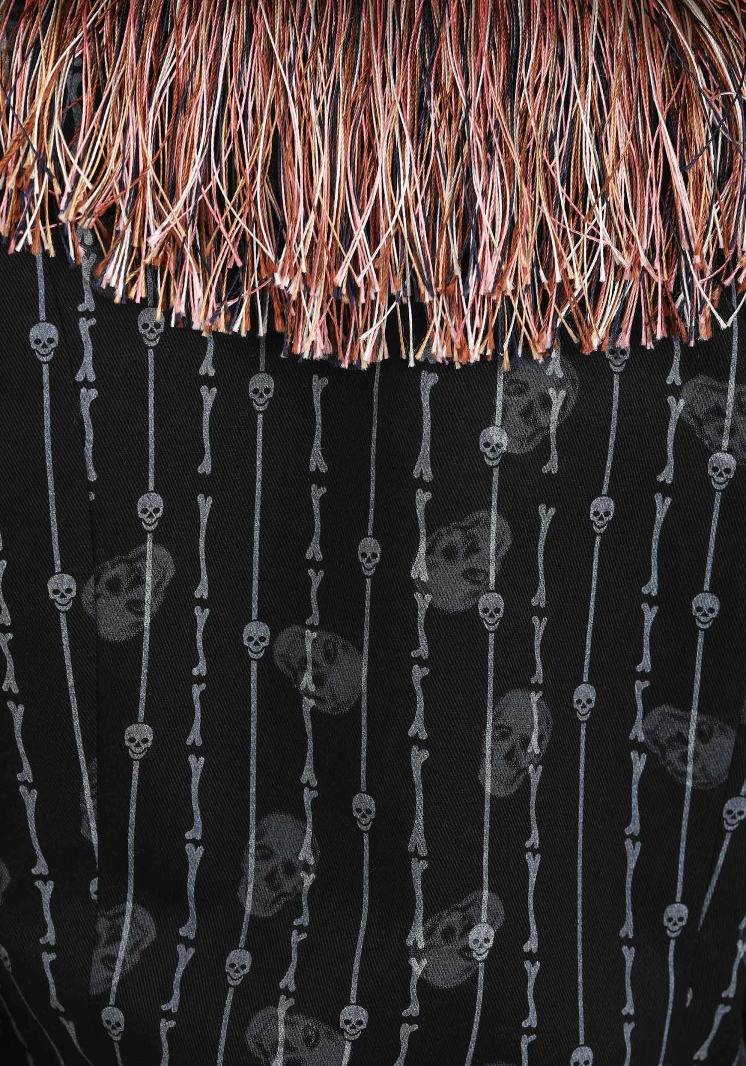 - Skull patterned jacket w/ fringe along the collar and lapels