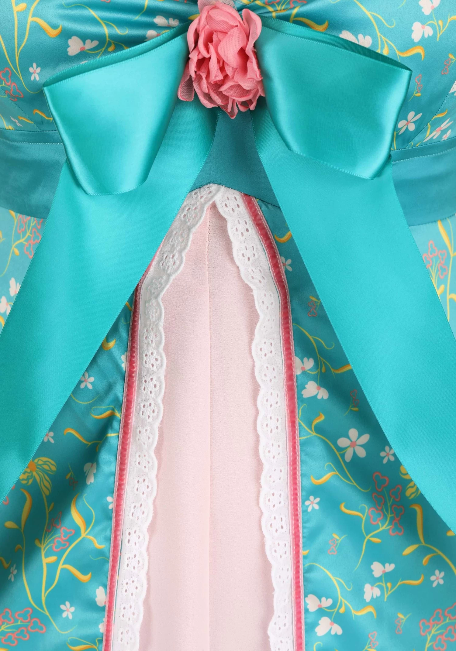Inspired by the magical melodies and creative style of Disney’s Enchanted, our Made By Us team designed this licensed dress to replicate Giselle’s fashion! Puffy sleeves and a pink underskirt combine to create the silhouette. Meanwhile, a sweetheart neckline, bow, fabric flowers, and a pair of hair combs provide the final animated accents!