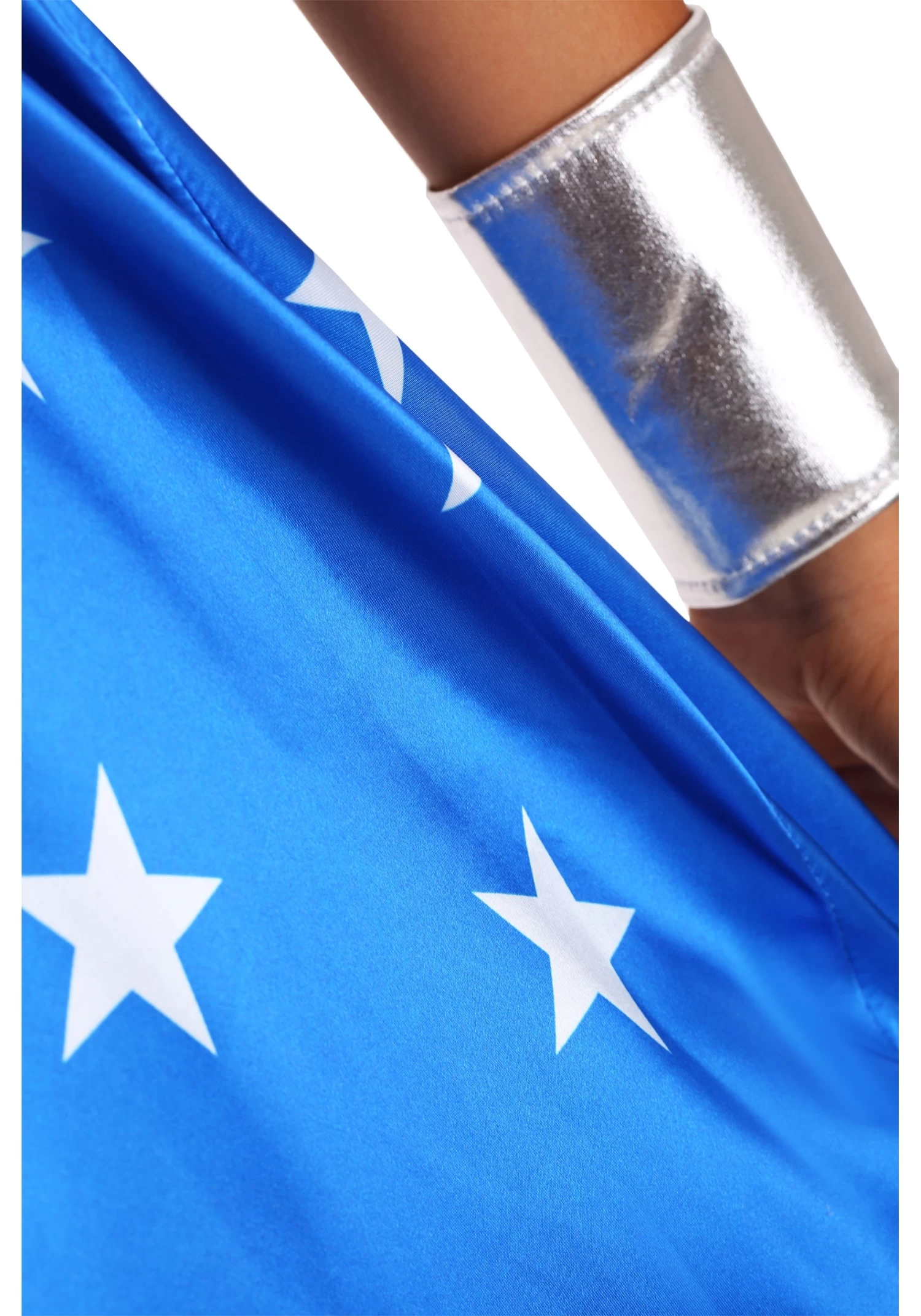 This Plus Size Long Dress Wonder Woman Costume lets you switch from mingle mode, to butt kicking mode without a wardrobe change and will truly transform you into the heroine who knows no bounds. The unique, officially licensed dress has a zipper in the back for easy on and off. The torso of the dress is a foam polyurethane to hold its shape. Also included are matching gauntlets that have a Hook and Loop fastener closure for a comfortable fit. The foam belt ties closed in the back. Don’t forget her signature headpiece! It has an elastic band to keep it in place all night long throughout all of your adventure! Add a pair of red superhero boots and a golden rope to give yourself the ultimate Wonder Woman makeover for Halloween or theme parties!