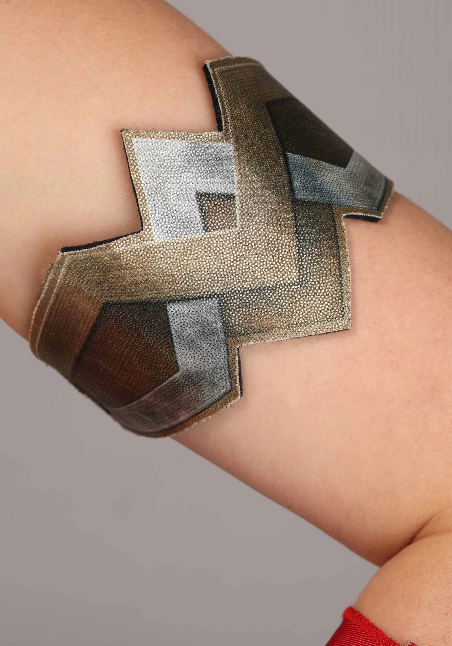 This Women’s Wonder Woman Deluxe Costume is based on her iconic outfit seen in the DC universe movies! It starts with a romper that fits with a zipper in the side seam. The shoulder straps are clear and length adjustable to help you adjust the fit. The romper has plenty of printed details and metallic-colored armor pieces to help recreate her red, blue, and gold armor. The gold belt cinches around the waist and the matching wrist cuffs might not actually let you deflect bullets, but they will have you feeling ready for superheroic feats! The armband fits around your bicep and the boot tops are designed to fit over many different shoes, so you can wear your favorite pair of boots with this cosplay superhero costume for women.